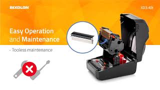 Le XD3-40t est compatible avec les principaux langages de programmation du marché, notamment SLCS™, BPL-Z™ et BPL-E™, et permet de programmer dans les langages Smart Switch sans réglage du mode. Harmonisation avec les logiciels de conception d’étiquettes, notamment Label Artist-II™ de BIXOLON et BarTender® UltraLite pour BIXOLON. La XD3-40t permet également une gestion et une assistance faciles de l’imprimante grâce à un bouton de configuration unique avec LED, des vidéos tutorielles en ligne complètes et un code QR intégré qui renvoie à des liens directs vers des ressources d’assistance en ligne. Le tout assorti d’une garantie standard de 3 ans.